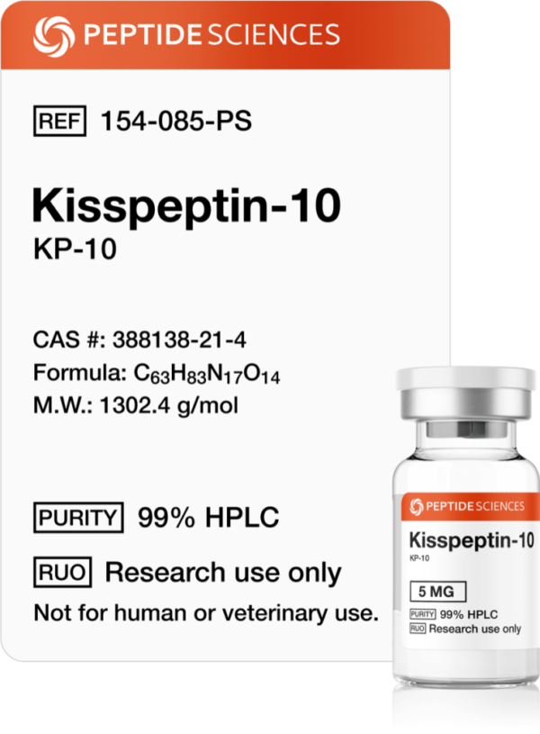 Kisspeptin-10 is a synthetic decapeptide (Tyr-Asn-Trp-Asn-Ser-Phe-Gly-Leu-Arg-Phe-NH₂) corresponding to the active fragment of the KISS1 gene product. It binds to the GPR54 (KISS1R) receptor, activating Gq-mediated signaling cascades and modulating gonadotropin-releasing hormone (GnRH) expression in preclinical studies. Kisspeptin-10 serves as a tool for exploring reproductive and neuroendocrine peptide signaling.